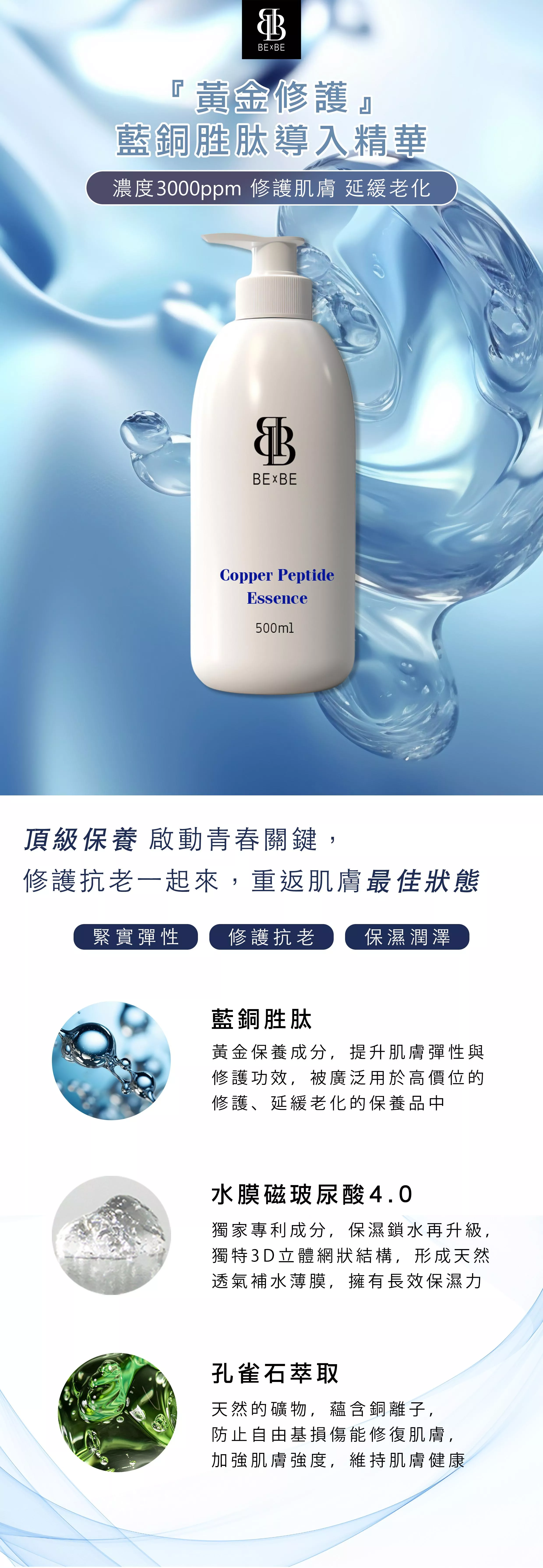 ●『藍銅胜肽』高濃度3,000ppm,高效幫助肌膚修護、延緩老化